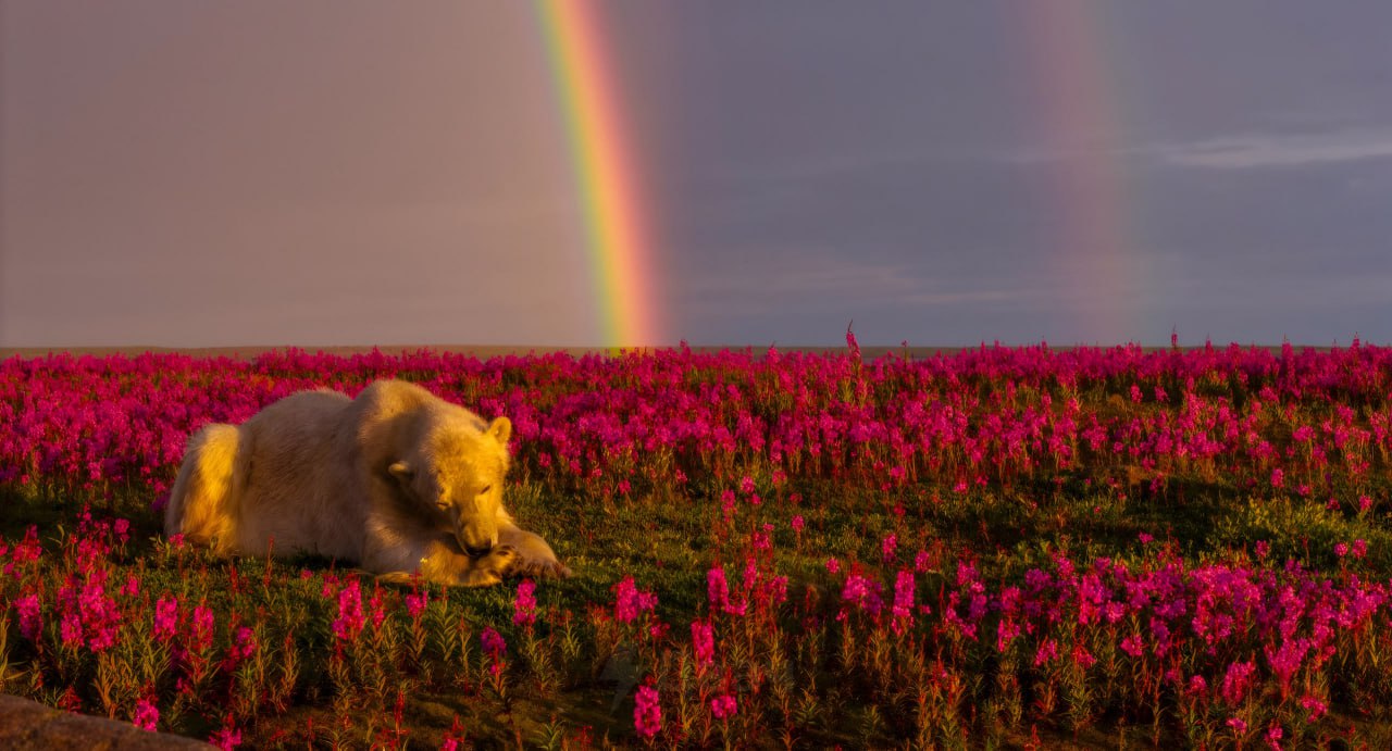 Каждое лето тундра в Арктике ненадолго расцветает, и земля вокруг Гудзонова залива покрывается розовыми полевыми цветами.