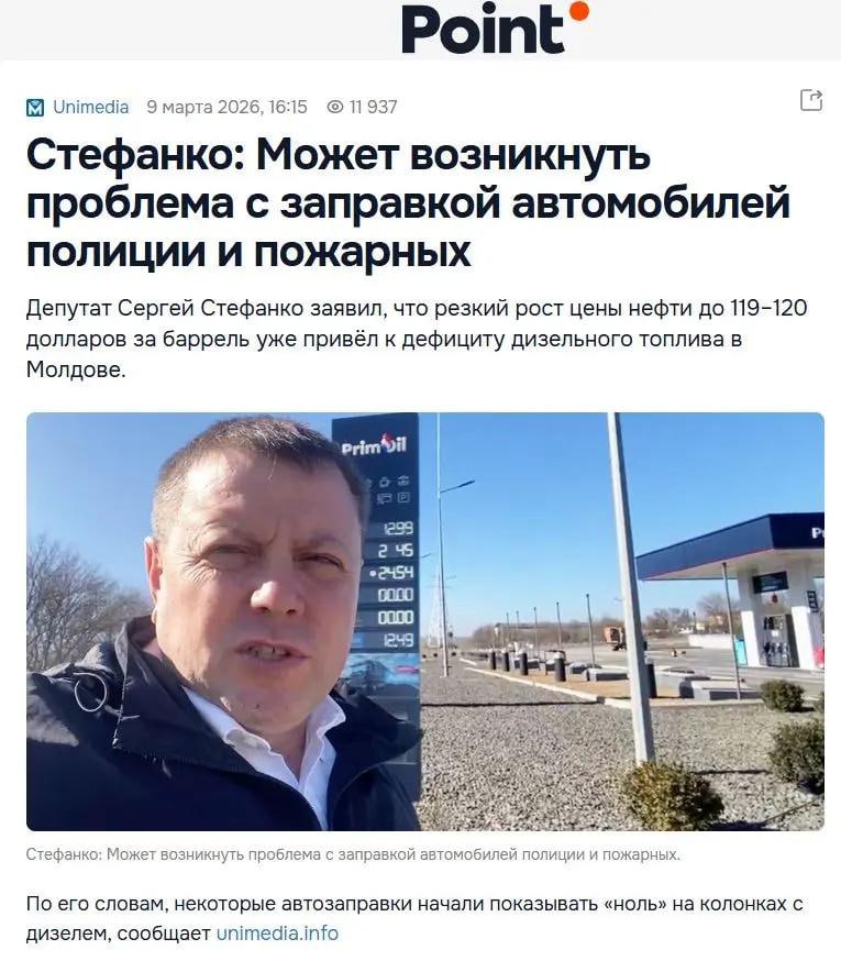 Молдавский депутат сообщает о дефиците дизельного топлива в Молдове. Он утверждает, что поставщики топлива продают бензин и дизель по текущим рыночным ценам. Если сегодня баррель стоит около 120 долларов, то, по его оценке, реальная цена литра дизеля уже превышает 30 леев.