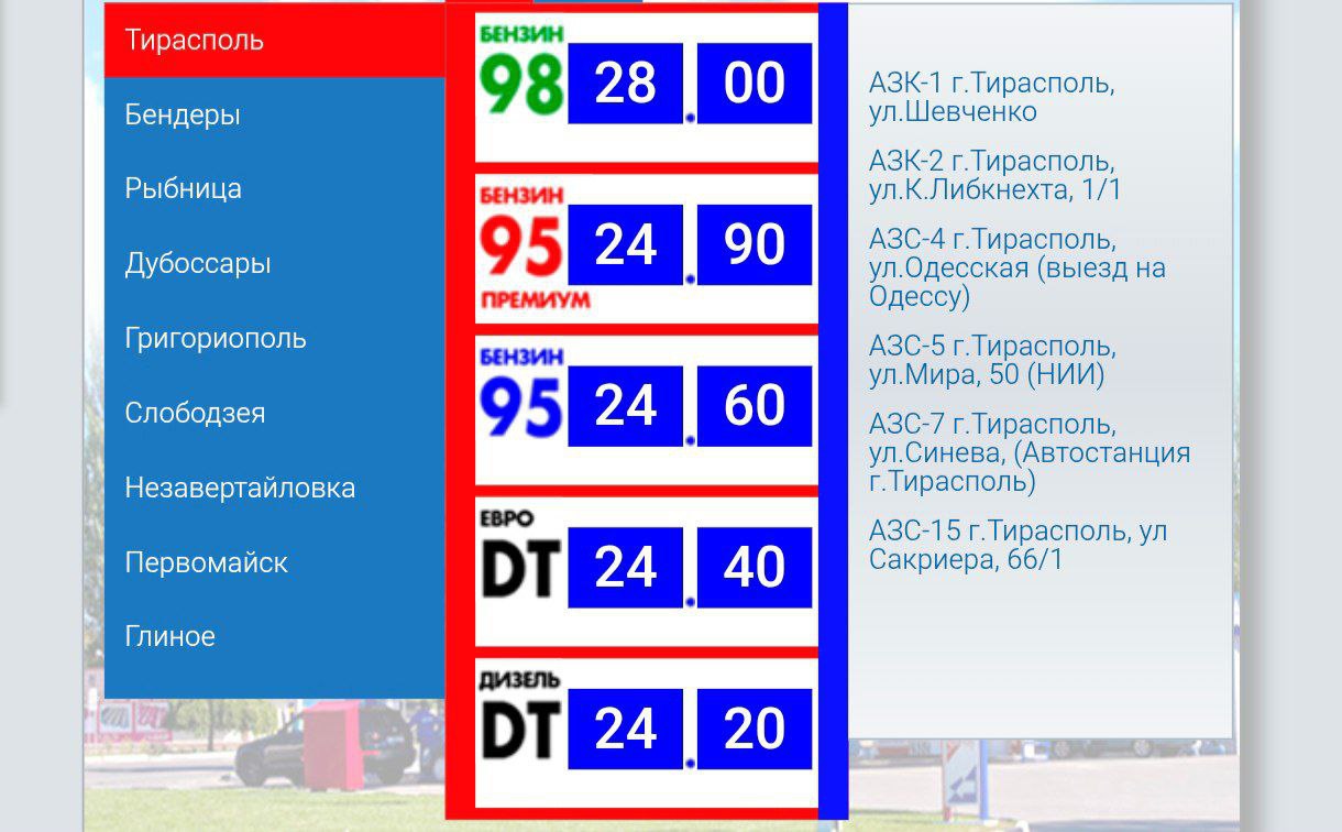 Цены на ГСМ в ПМР снова пошли в +