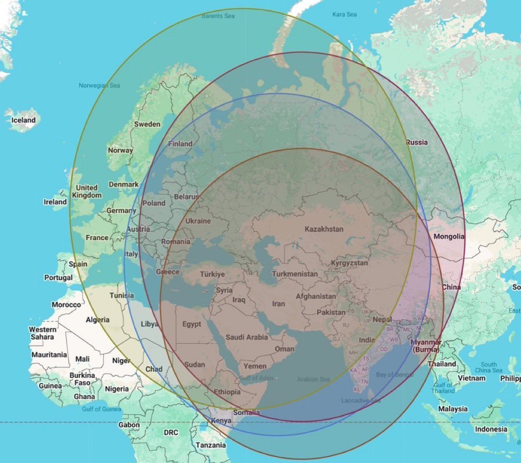 Если сравнить это расстояние с расстоянием до европейских стран, то получатся примерно такие пределы досягаемости.