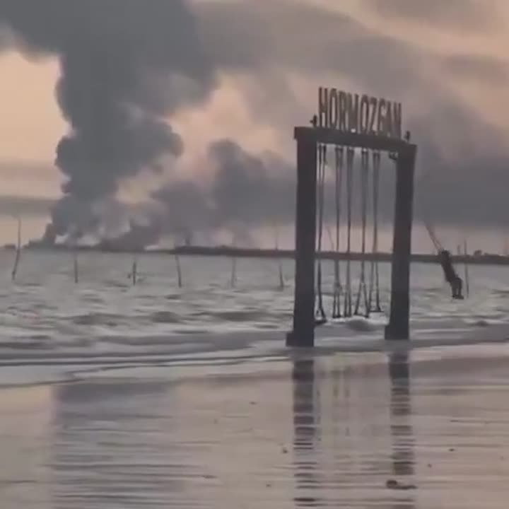 В соцсетях появилось видео, на котором девочка качается на качелях, предположительно, на фоне полыхающей военно-морской базы вблизи Ормузского пролива.