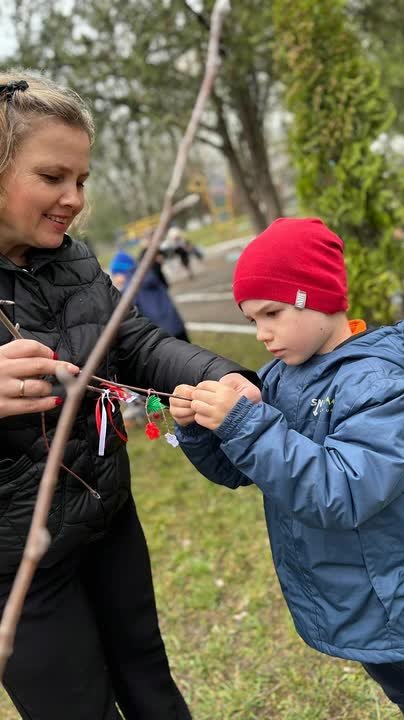 В Рыбнице малыши сняли красно-белые бутоньерки, которые носили весь март, и повесили их на ветки деревьев.