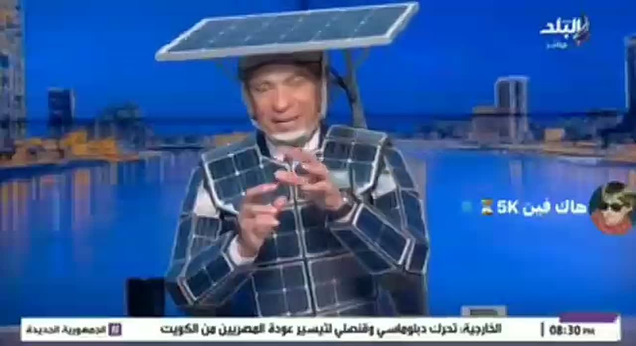 В Египте ведущий вышел в эфир с солнечной панелью на голове