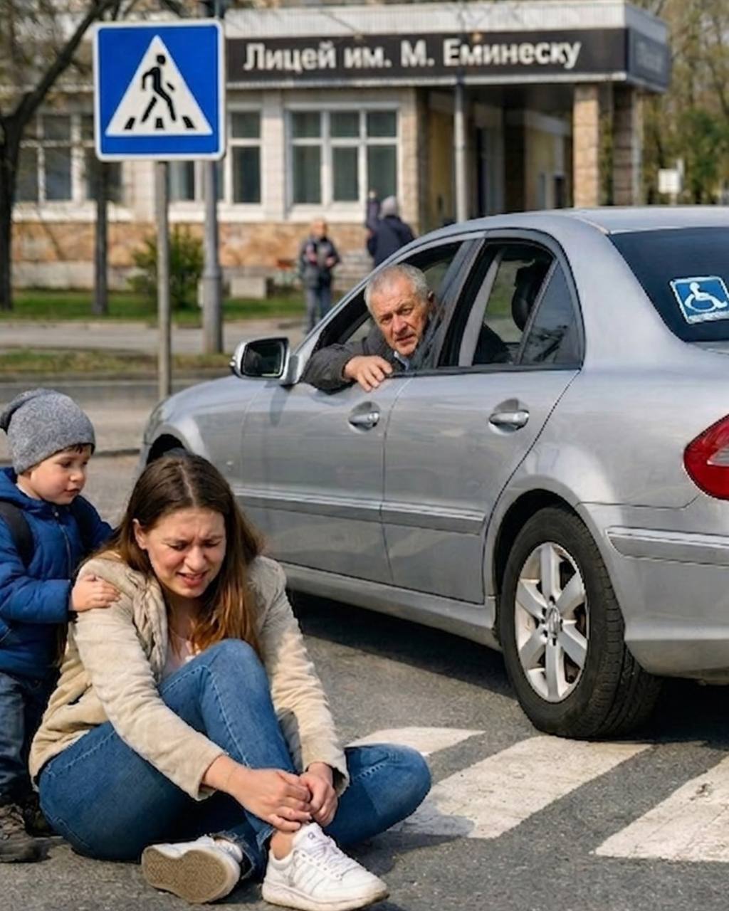 75-летний водитель «Мерседеса» не заметил женщину с ребёнком на пешеходном переходе: задел её зеркалом и наехал на ногу. После короткой проверки состояния пострадавшей мужчина уехал с места происшествия.