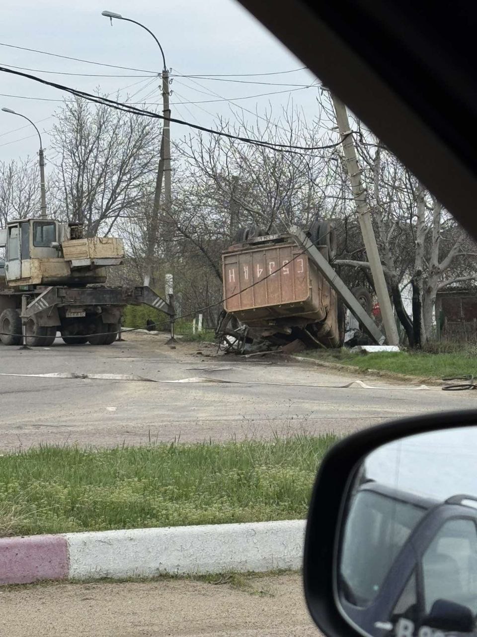 Грузовик влетел в опору линии электропередач в Дубоссарах.