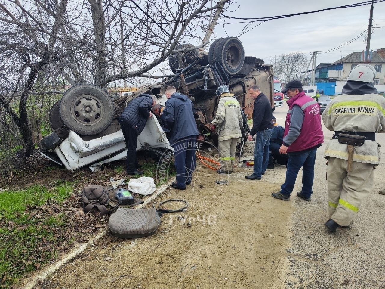 По предварительным данным, водитель не справился с управлением на спуске, врезался в столб и опрокинулся.