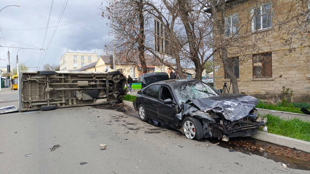 Она проехала на красный и столкнулась с «Хондой», ехавшей на зеленый.Скорая увезла в больницу двух пассажиров микроавтобуса. «Хонда» сильно помята, но водитель цел.@tv_pmr
