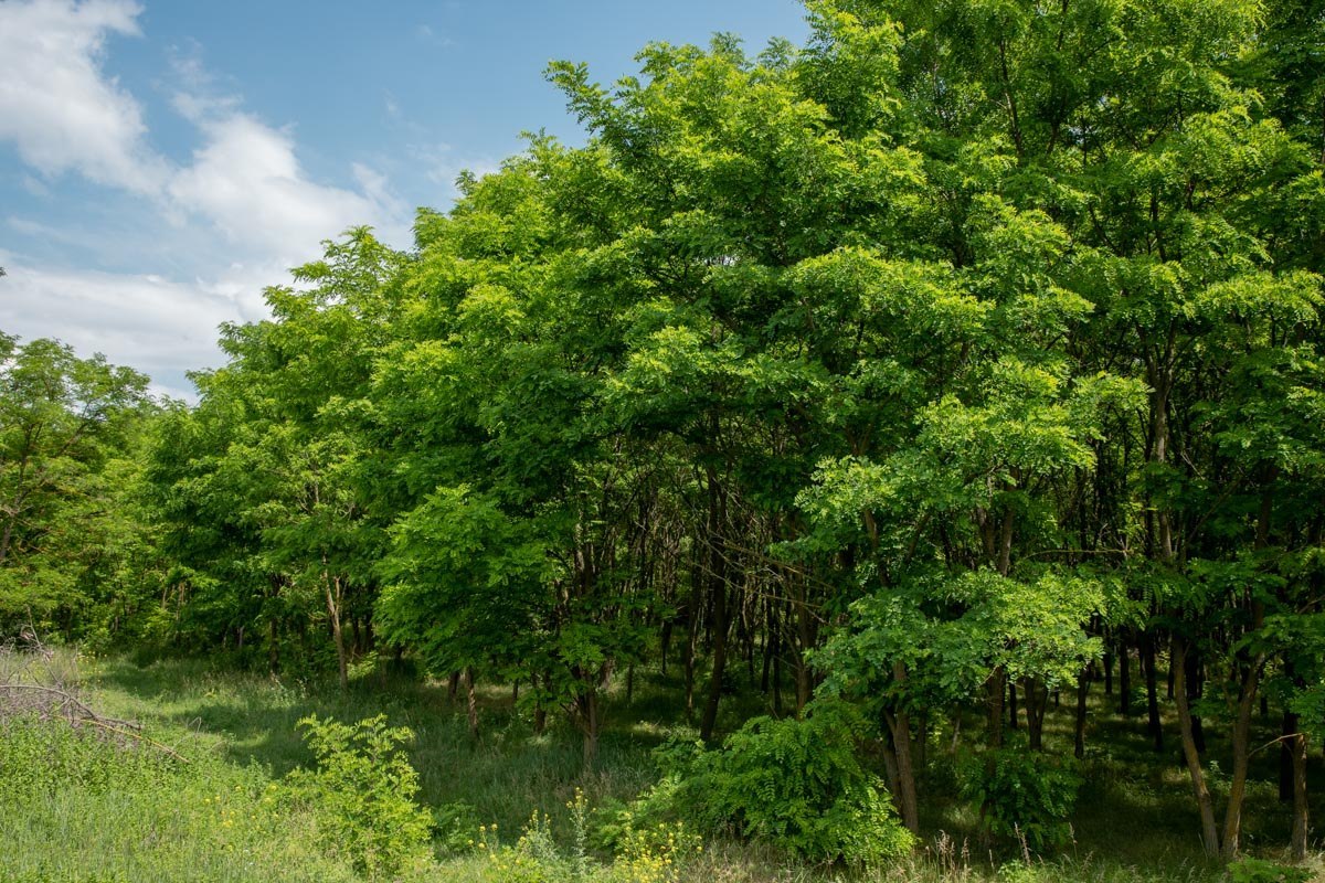 Высадили больше 50 гектаров нового леса. Это белые акации, крымские сосны, канадские тополя и дубы: черешчатый и красный.