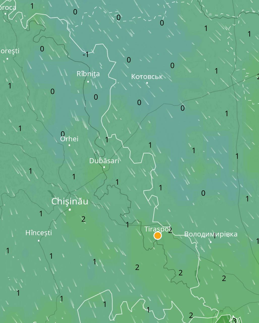 -1 показывают метеокарты в ночь с четверга на пятницу на севере Приднестровья, на юге будет +2.