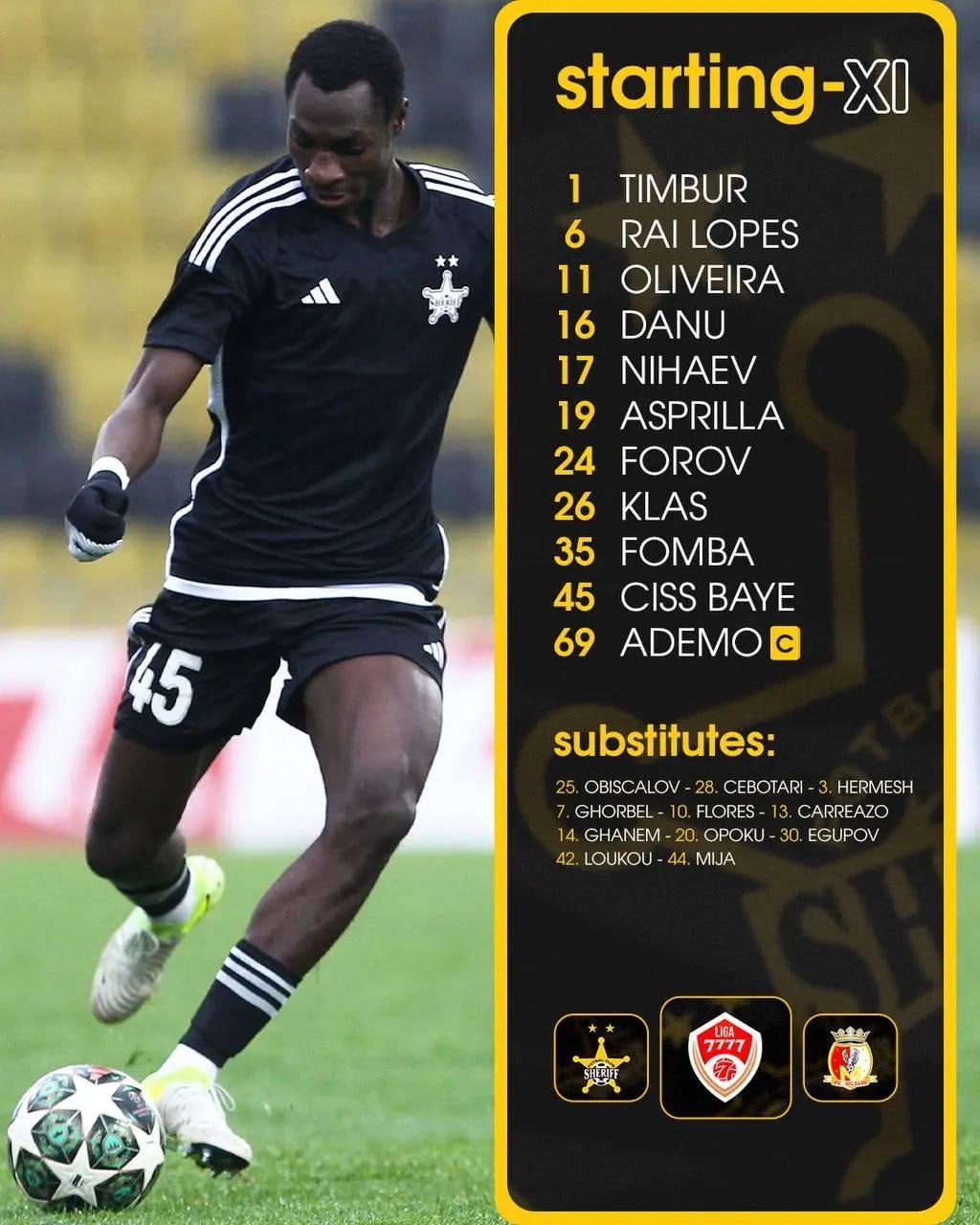 Матч «Шериф»-«Милсами» начался. Стартовый состав тираспольчан на игру.