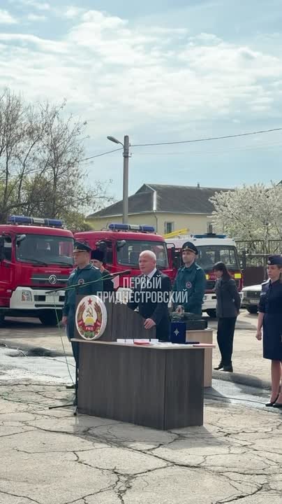 На плацу СВПЧ-1 – торжественное построение. Начальников всех пожарных подразделений республики поздравляет вице-премьер Виталий Нягу: