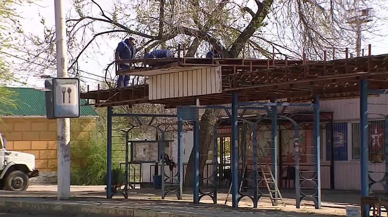 В Тирасполе ремонтируют привокзальную площадь. Дорожники снимают вокруг сквера старый асфальт, плитку здесь тоже заменят. В сквере будут новые скамейки, на клумбах посадят розы. А пока рабочие пилят сухие ветки на деревьях и косят траву. Троллейбусное управление разбирает старую остановку, она уже протекает и больше похожа на груду металлолома.
