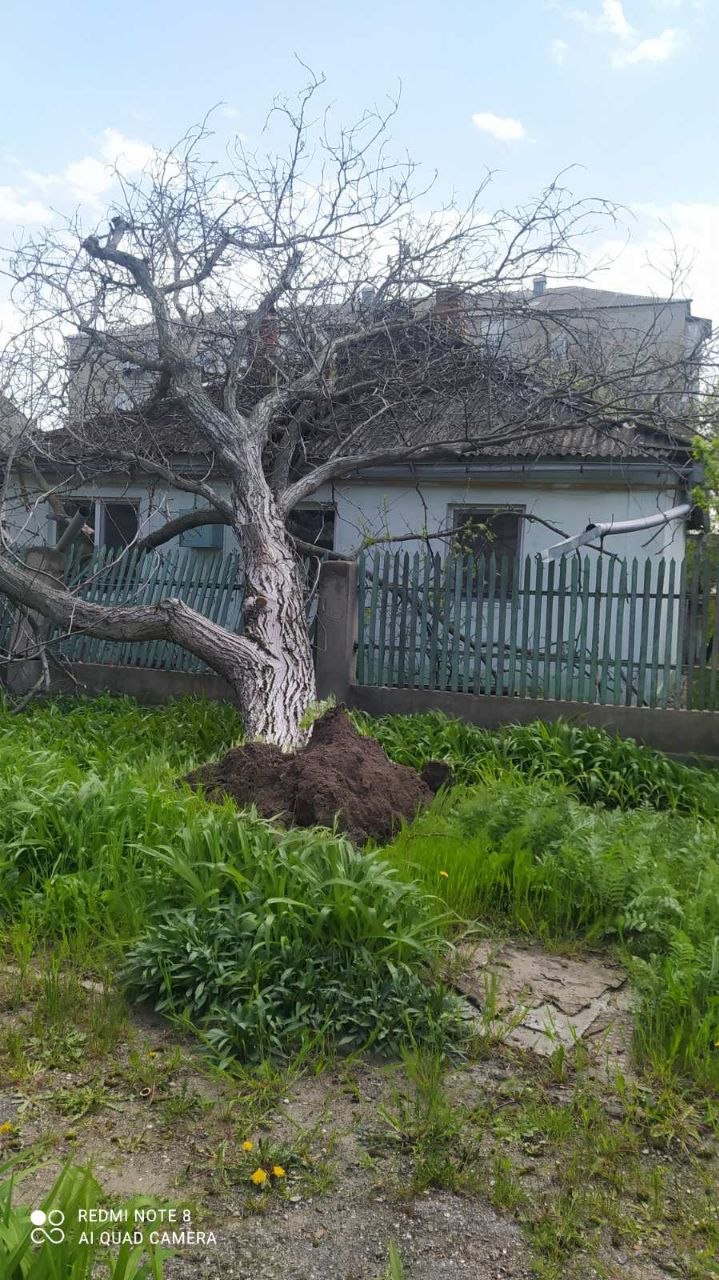 Упавшее дерево на ул. Суворова, в районе теоретического лицея, оборвало провода. Часть домов осталась без света. Последствия ураганного ветра будут серьезными!