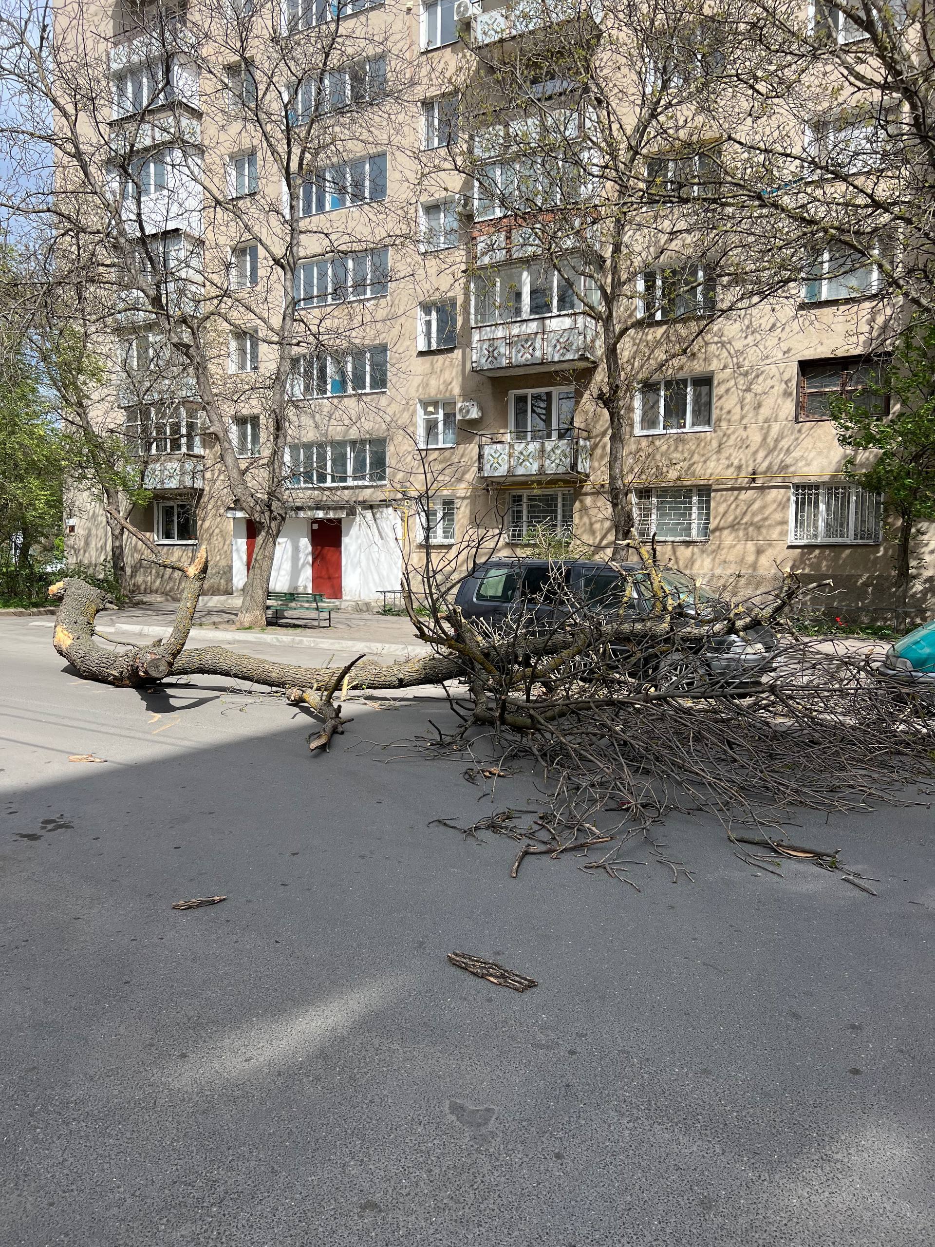 Упавшее дерево на ул. Суворова, в районе теоретического лицея, оборвало провода. Часть домов осталась без света. Последствия ураганного ветра будут серьезными!