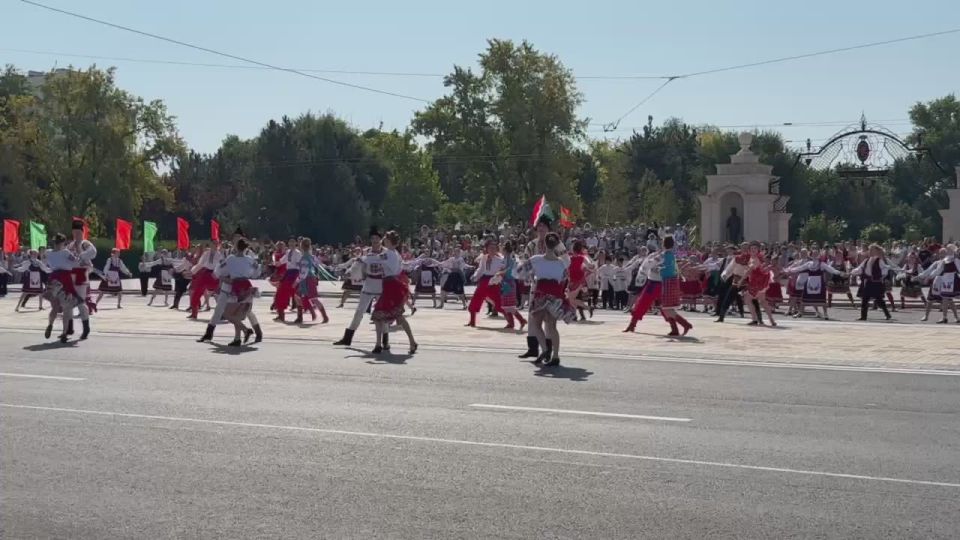 800 артистов танцуют молдавские, украинские, русские, гагаузские, болгарские танцы.Эту постановку готовили около полугода.
