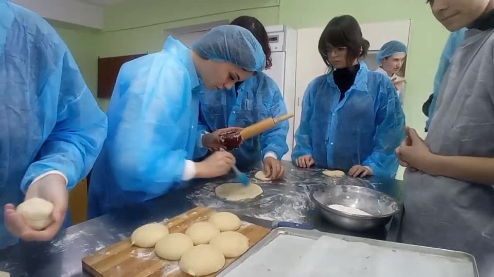 Школьников учили печь булочки и проводить опыты. Например, проверять молоко на наличие кислот, воды и крахмала.